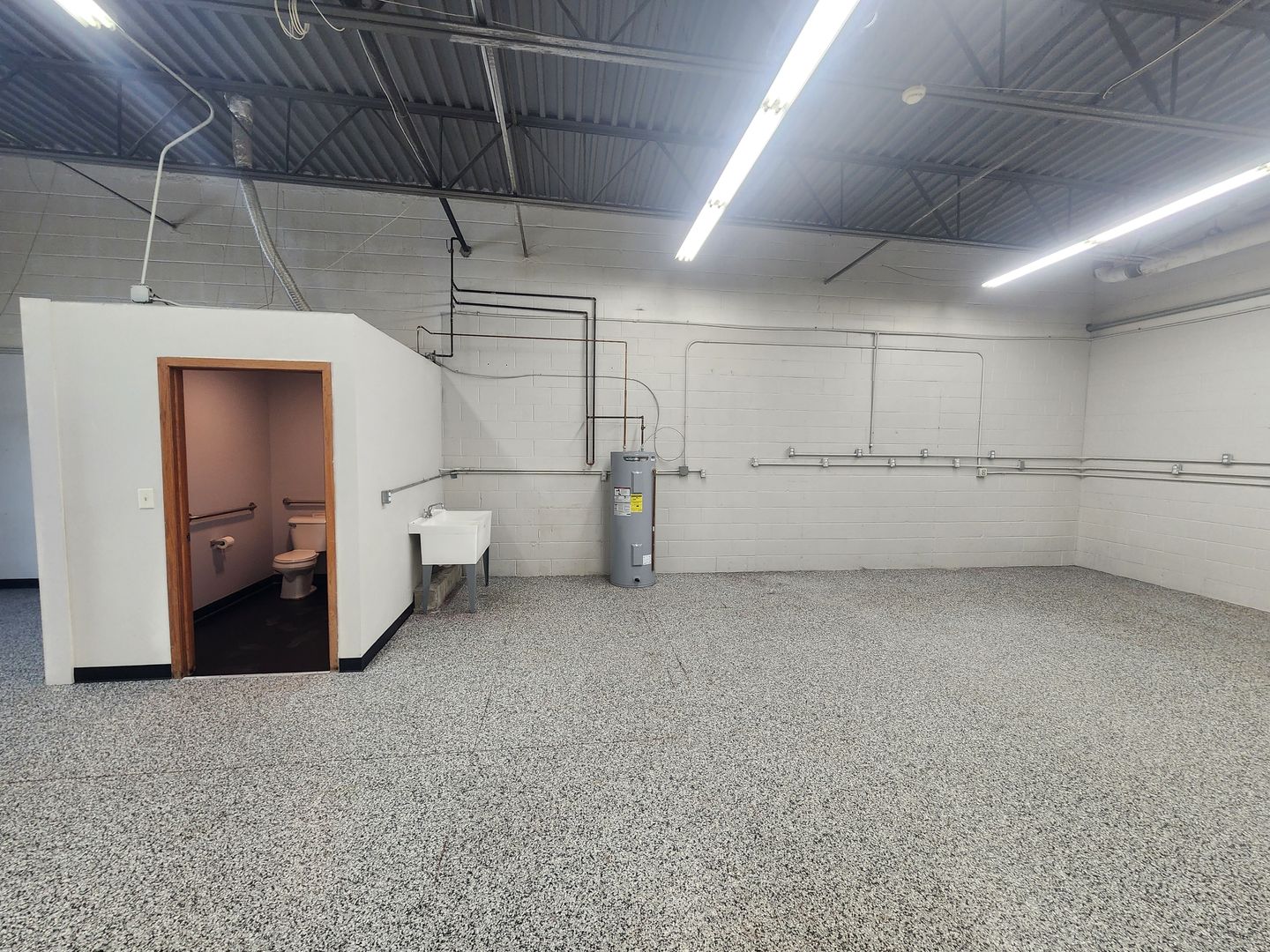 1,500 sq ft of clean, dry warehouse space. Newly epoxied warehouse floor, freshly painted bathroom floor, and crisp cleaned and painted warehouse walls. Unit is a blank canvas ready for your storage or business needs!